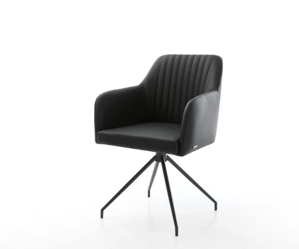 Das Kreuzgestell überzeugt durch sein einmaliges Design. Vier Füße verlaufen in sanft konischer Form und knicken dramatisch zum Boden hin ab. Das sieht nicht nur aufregend gut aus, sondern sorgt für besonders sicheren Stand. Das Kreuzgestell verfügt über eine zusätzliche Drehfunktion inkl. Rückholfunktion von 180 Grad und macht diesen Stuhl deshalb herrlich praktisch und komfortabel.